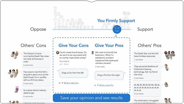 Suggestion:Visually display the topics and discussions like Considerit did.