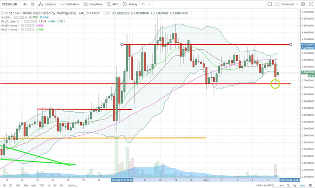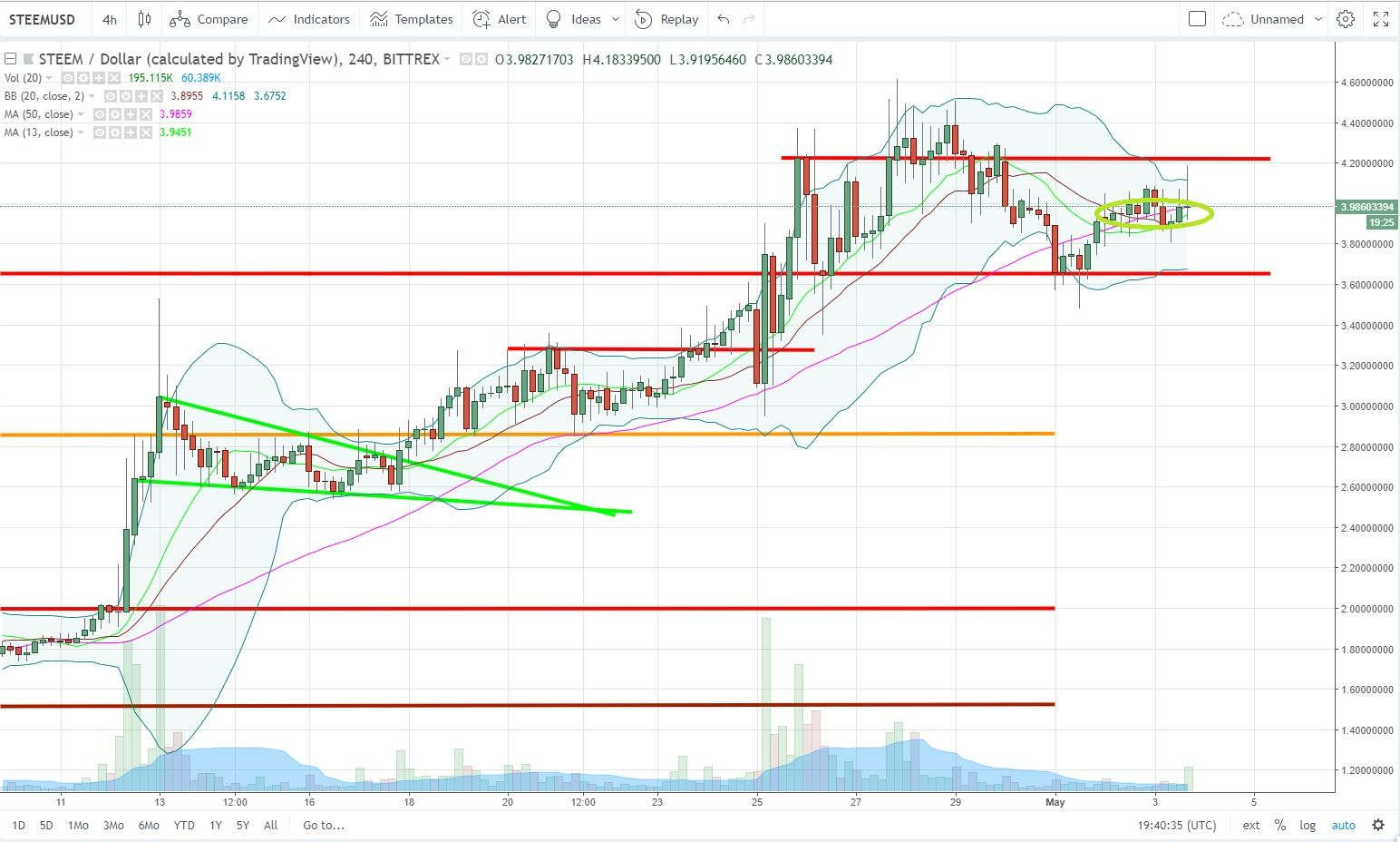 Even with the current Break Out on the BTC, the STEEM is still not decided if we will do a UP or a DOWN. We are still stucked in the middle of our 2 lines and even if we have some moves, no one of them is able to go test one of the 2 lines.
