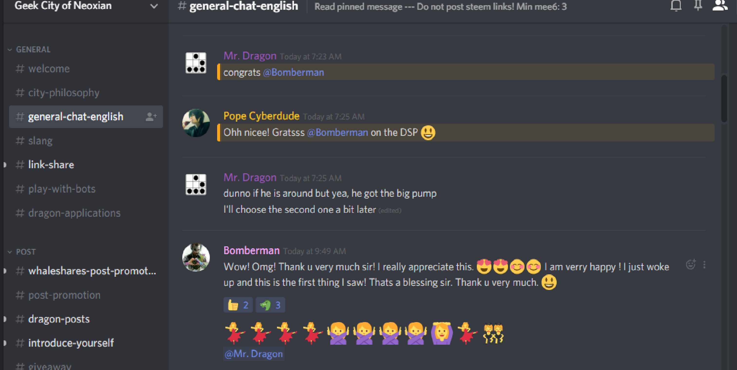 It was the moment I was feeling blessed and super happy at the same moment! I rush to our discord channel City of neoxian where Mr. neoxian is the Admin to thank him. He was already there and he announced there my winning!
