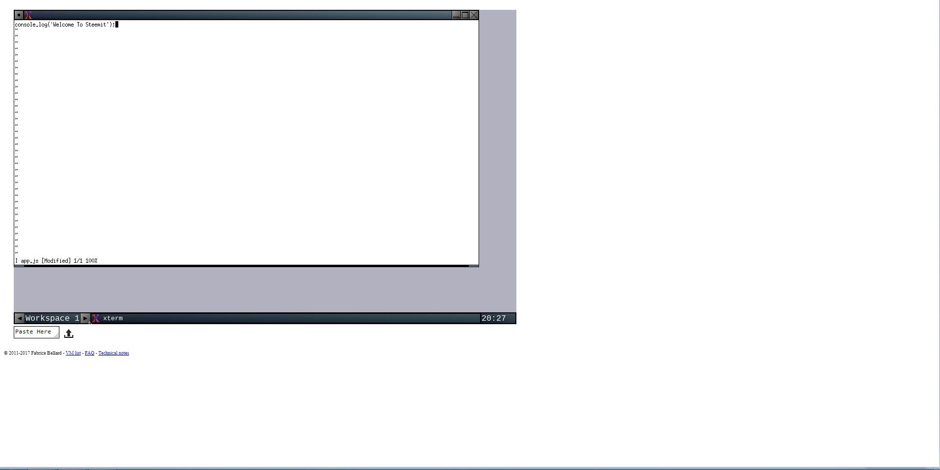 If you did the last edition of the series. We created a simple node.js code. To simulate the things that programmers do in the real world minus the heavy workload. We press 'i' to insert. We press 'Esc' key to transition. We press ':' to other important commands in the vi editor like saving the file. So for now press 'i' to start inserting your code. And then type the following