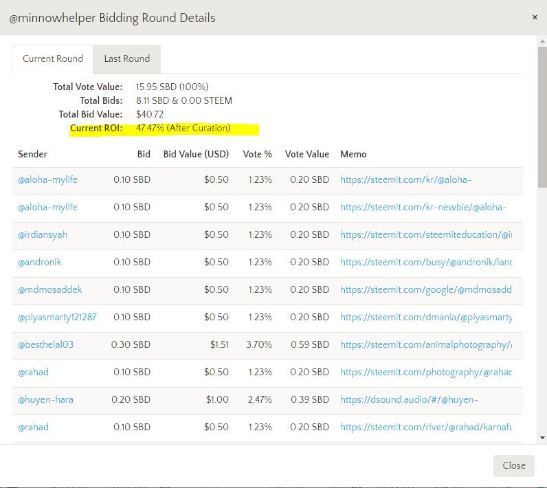 Be aware that the ROI will decrease everytime someone place a bid.