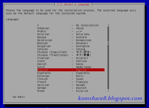 - Select the display language for the installation process Debian as you wish, here we use English and press "Enter".