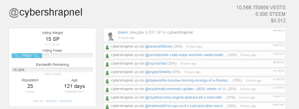 Not very happy about this. I feel like I flushed 15 STEEM down the drain that could have been better used elsewhere right now.... But at the same time it motivates me to just get them all past the 15 SP delegation mark so I just never have to worry about it again.... I dunno...