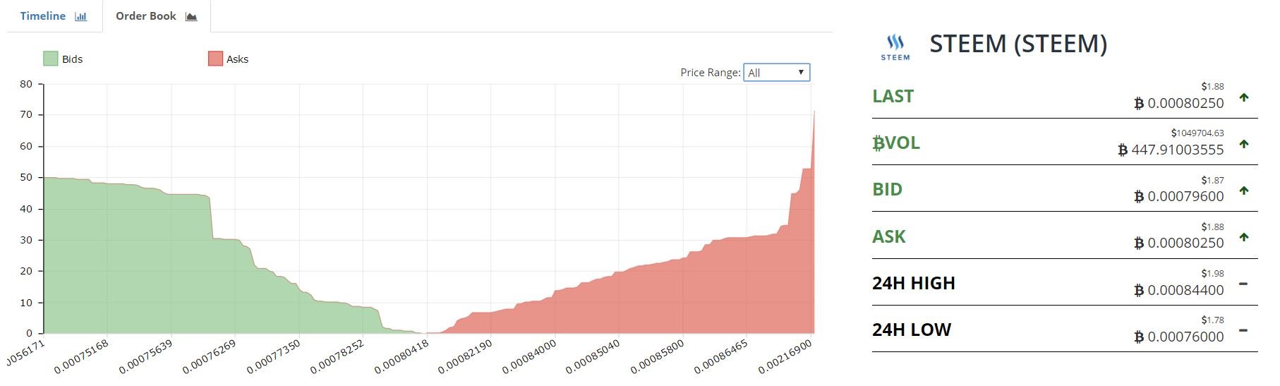 Market Depth Charts and Using STEEM to Compare Three Exchanges