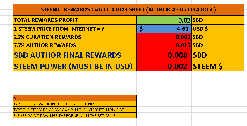EXCEL SHEET FOR STEEMIT REWARDS CALCULATION SHEET (AUTHOR AND CURATION ) ( FOR POSTS AND COMMENTS )