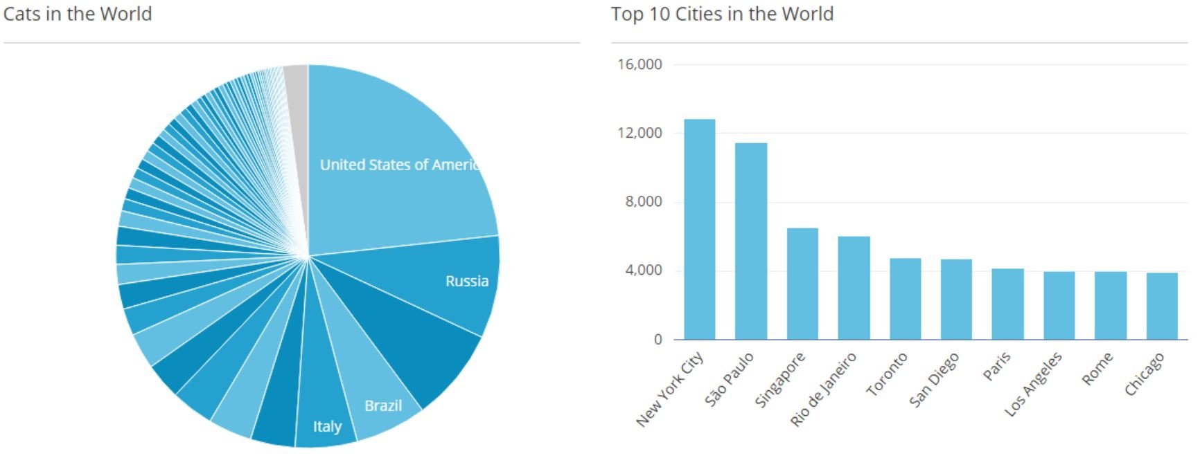 An interesting application of the data leakage describe above is the website http://iknowwhereyourcatlives.com which has scoured Flickr, twitpic, instagram and a few other sites to collect thousands of cat pictures and plot their location on google maps; give it a shot go see the cats in your neighbour hood. They also generated some analytics based of this data and as it turns out the most gps locate-able cats are in USA and New York had the largest percentage by city.