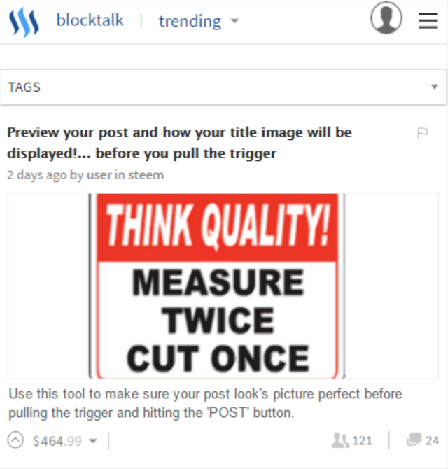 So i have mashed up a little tool and i am happy to present it so we can use it in the meantime to test how our Image, Title and Summary will be displayed on Steemit! it give's you a complete preview on how your post will be displayed and even comes with $400+ worth of upvotes.