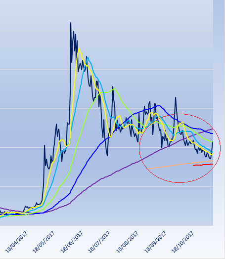 Having now got sufficient data to work with I have pulled the #dMAmapping⇗⇗⇗⇗⇗⇗ for #Steem as far back as I can and have introduced the 550/500 dMA's.