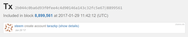 That little number links to the transaction ID for my account creation page which looks like this.