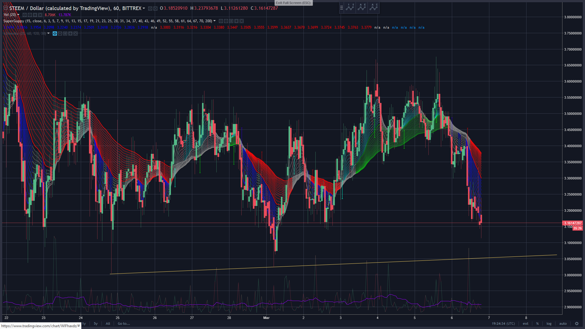 The correction is still in play, but may soon be finished. The price have been trading sideways the last couple of weeks, Steem is waiting for BTC to move.