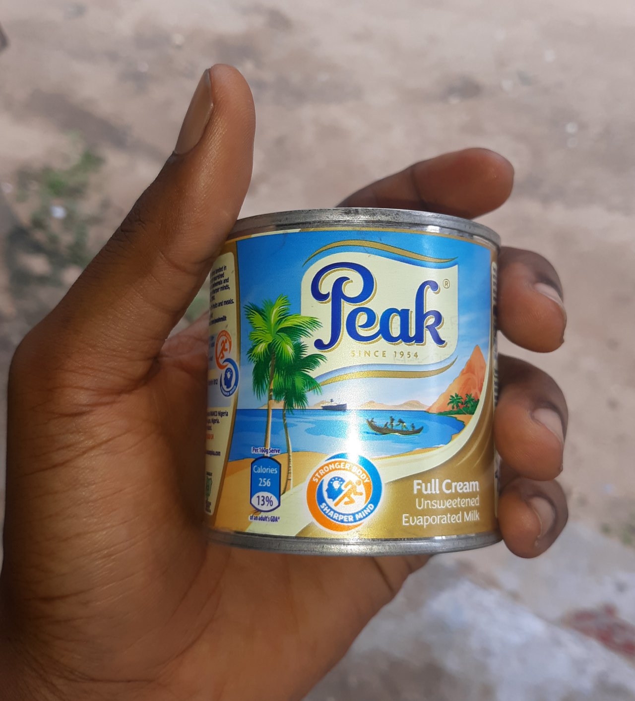 enough quantity of water from thr snail. After getting the water and putting it in a container, get a tin peak milk, open it and pour all of it inside the container put put the snail water and mix them together.