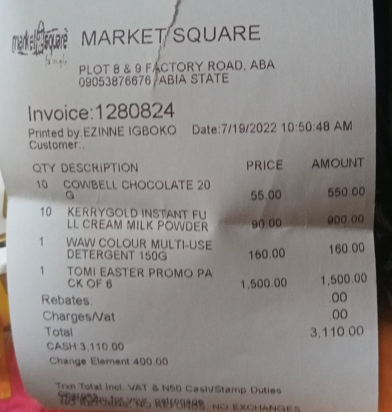 Here is a summary of my purchase at market square supermarket on Tuesday 19th July.👇