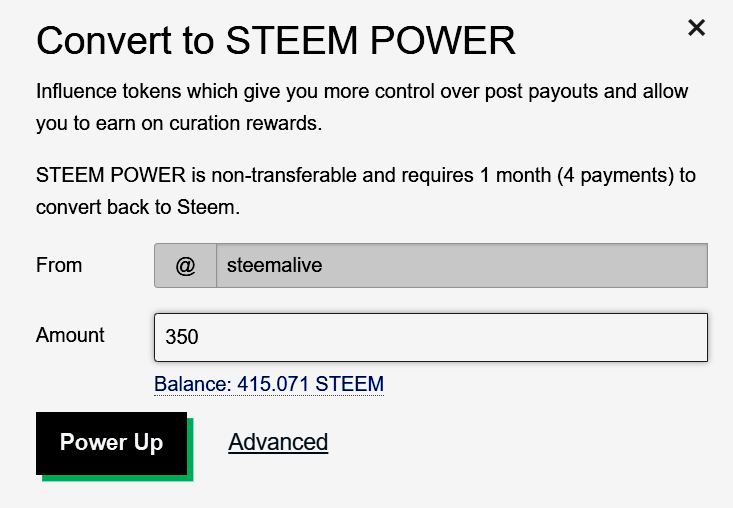Within the week in order to achieve 30k SP, we powered up 820 Steem. We usually power up once a week, but we did this powerup midweek to reach the 30k mile stone. Now we powered up another 350 Steem. So the total powered up in this week 8 is 820 + 350 = 1,170 Steem