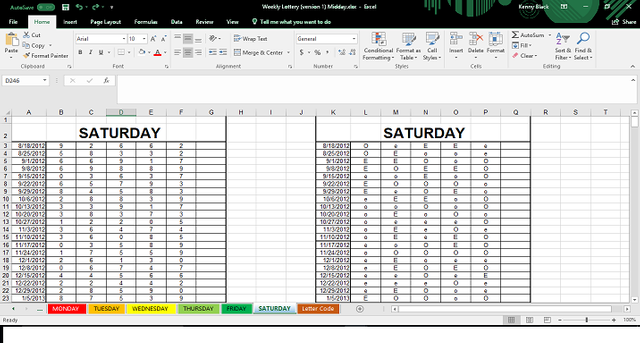Go back about 50 weeks on the Weekly and go back about 200 on the Daily. The Daily is simply that: an organized daily chart showing the numbers that come out every day. The weekly will have Saturday through Sunday on separate tabs. The Weekly will show only the numbers that came out on the specific day each week. The weekly is more important than the daily but you need them both. As you can see in the picture this is an example of how to organize it but you can do it however you want.