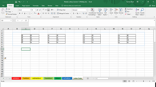 The other option is to use the letter code on the weekly and simply go back about 20 weeks and see what codes have came out. They have a higher probability of coming back out. • You do not have to find 20 different codes just go back and note the last 20 codes consecutively. There are only a total of 16 different letter codes for two numbers that are established so far. • There is more work that can be done here like seeing how many times each code occur but you would also have to learn how it play out. Here is an example:The Weekly Letter Code | Row 1 and 2 |