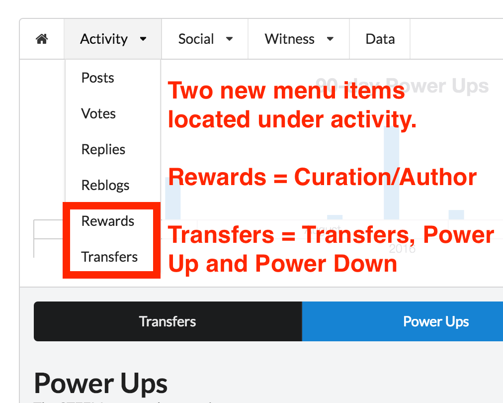 This new page is the exact opposite of the power up page, and shows all power down transfers an account has ever made. The record being shown here is when the actual power down occurs, and not the request to power down.