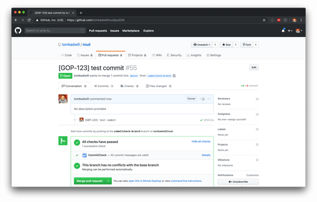 CommitCheck ensures commit messages, PR titles and PR descriptions are consistent and contain required information. Check that commits contain a JIRA number, prevent WIP commits, ensure PR descriptions include docs and much more.