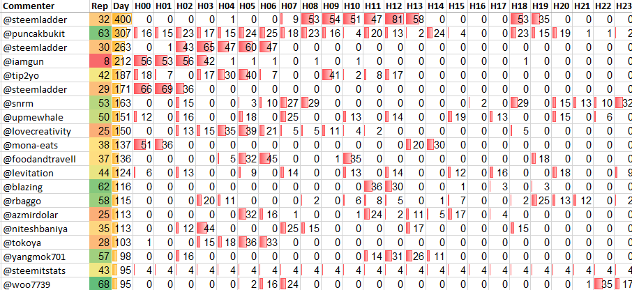 Here’s a look are the top level 1 commenters for 20180125. I’ve excluded known bots and curators from this but if anyone has any suggestions, they are most welcome. This serves to inform and you make you own decision whether they are the good, the bad or the ugly. I can only comment once every 20 seconds. Correction: I am only allowed to comment only once every 20 seconds. I type fast and sometimes get that annoying message quite a bit when responding and when I reply on my phone using voice typing, I get that even more. Anyway, 1,000 comments will need at least 333 minutes which is more than 5 and half hours. Hands up those of you who have spent more than 5 hours leaving comments at the first level.