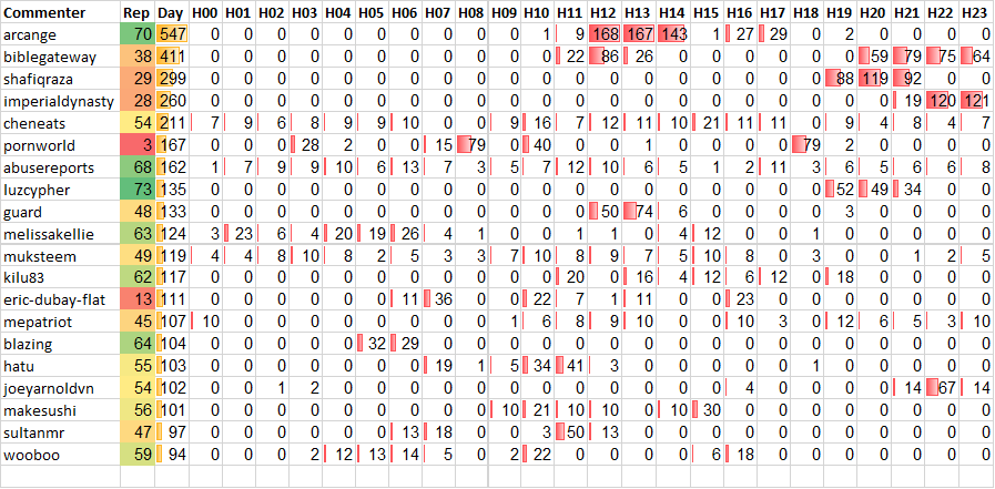 📊 Top Level 1 commenters for 20180517, active hours and how their comments looks like (by @ace108)
