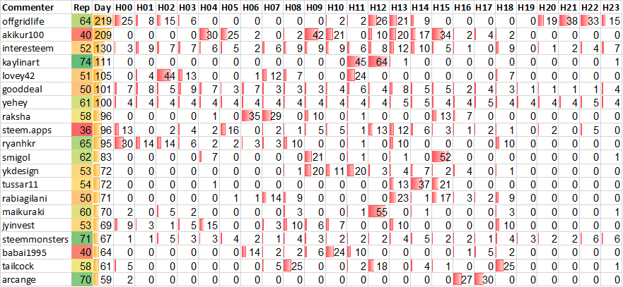 📊 Top Level 1 commenters for 20180913, active hours and how their comments looks like (by @ace108)