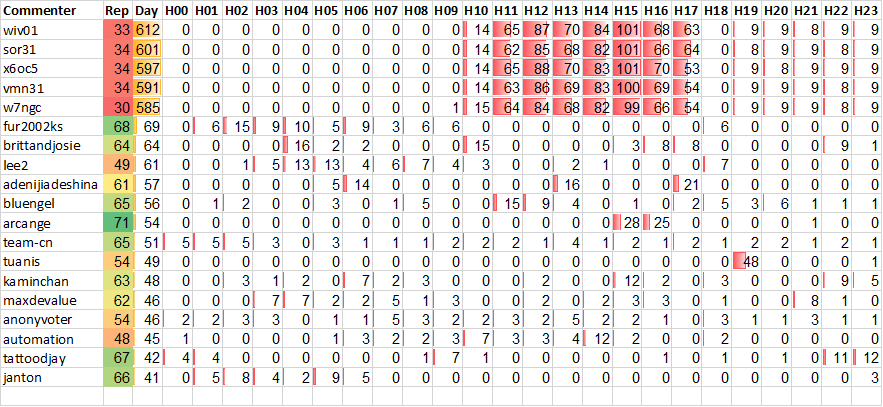 📊 Top Level 1 commenters for 20190418, active hours and how their comments looks like (by @ace108)