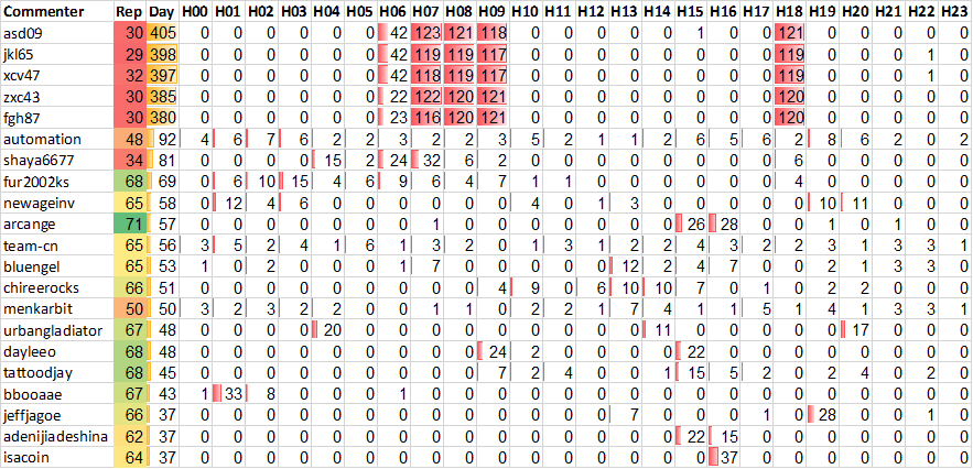 📊 Top Level 1 commenters for 20190424, active hours and how their comments looks like (by @ace108)