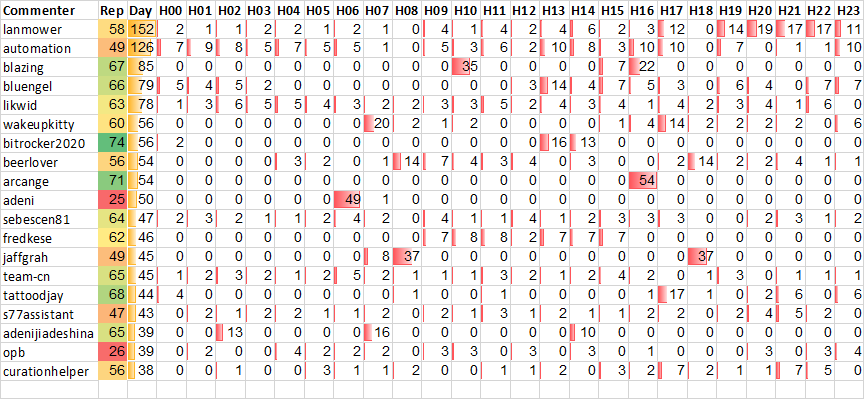 📊 Top Level 1 commenters for 20190720, active hours and how their comments looks like (by @ace108)