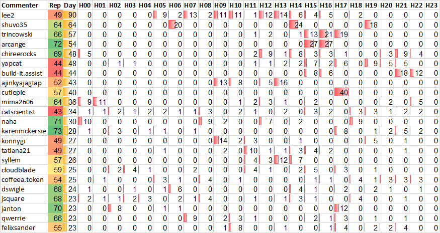 📊 Top Level 1 commenters for 20191128, active hours and how their comments looks like (by @ace108) |