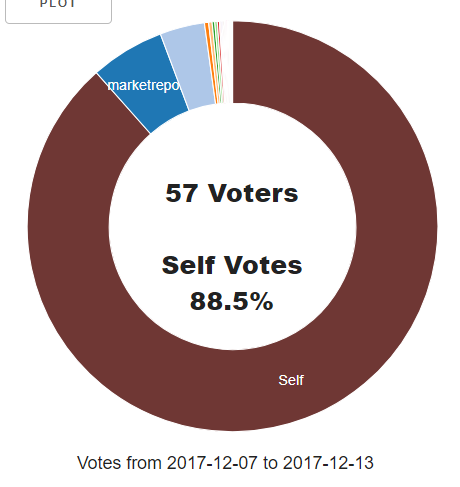 To spare you all the complete list, the accounts have been filtered to show only the accounts voting for themselves more than 16.7% of the time.