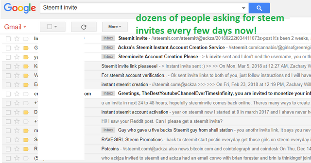 (Screenshot of just one small example of my Steem Invite Email requests, dozens of people asking for steem invites every few days!)
