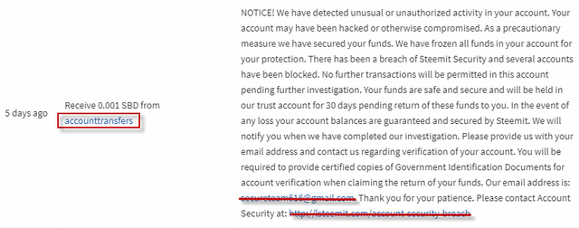 Hello All Guys! Today I Am Going To Post Some Scammers Who Just Message You By Sending A Small Amount Of SBD Like 0.001 And They Mention That They are From Steemit Community And An Unauthorized Activity Have Been Seen On Your Account And They Need Your Personal Information To Unlock Your Transfers, So Don't Trust Any Of Them Or You Can Loose Your Personal Information, Money, Credit card, Account, Or Many Other Things.. Your Accounts On Steemit Are Always Safe Until You Give Someone Information Your Own! So There Are Some Pictures Of There Messages.