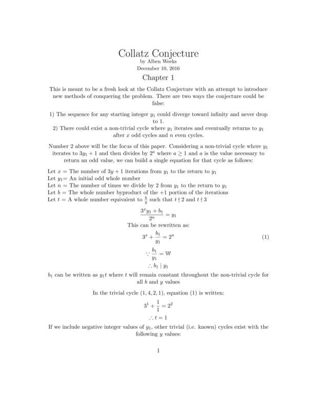 I used a program called TexMaker which I hear is a must for college kids who need to create clean looking PDF's or final papers that have equations or uncommon symbols as part of the finished product. It worked well for me and took minimal effort to learn a few tips and tricks (getting the syntax right to create the document from code). Does anyone know a way to show a PDF file on a Steemit post? The best I could do for now is to add it page by page after using a converter lol. Anyway, I'm hoping this is the first time on Steemit that work on an unsolved math problem has been stored for the obvious reasons mentioned above. I need to continue work on Collatz Conjecture =).