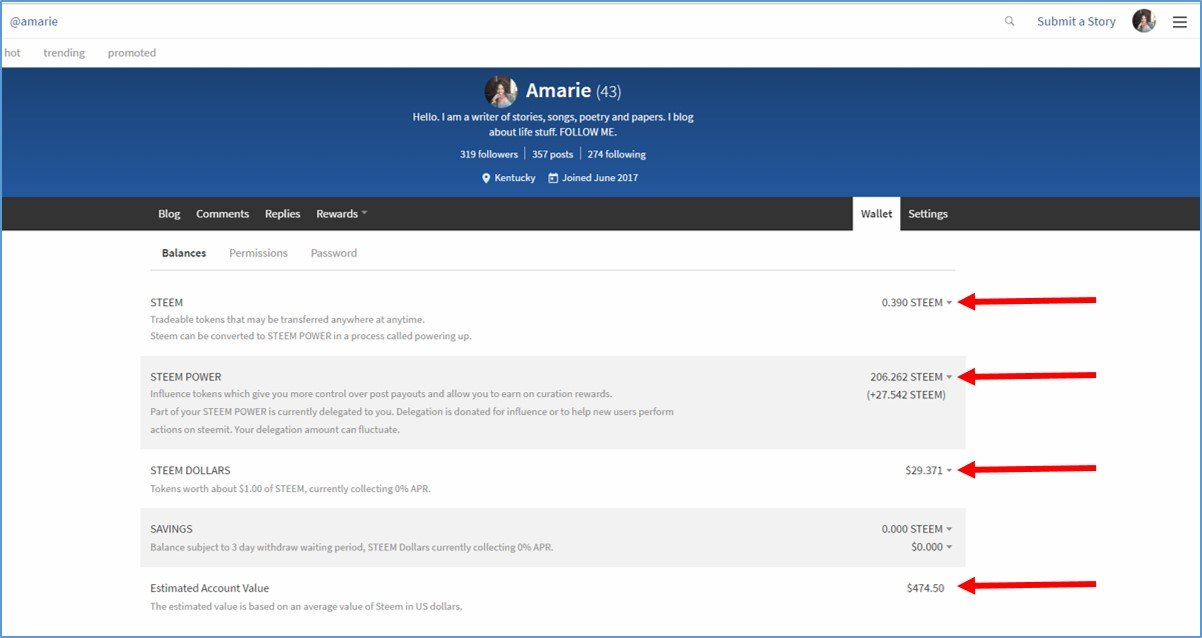 Once all of these steps are completed, you should see how much STEEM POWER you have as well as STEEM DOLLARS (SBD) and estimated account value.