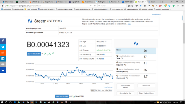 STEEM is 12th overall today at TOW this article - in Market Cap. with $174,573,083. It is valued at 75¢ USD ( $0.747909 )