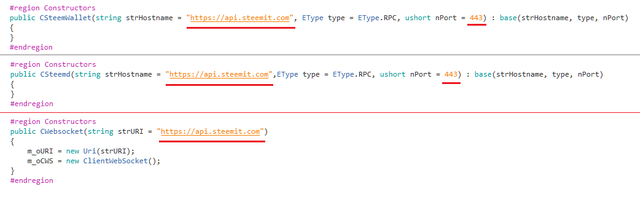 In CSteemD and CSteemWallet we have to change string var strHostname on function to "https://api.steemit.com" with port 443 and in CWebSocket → strURI