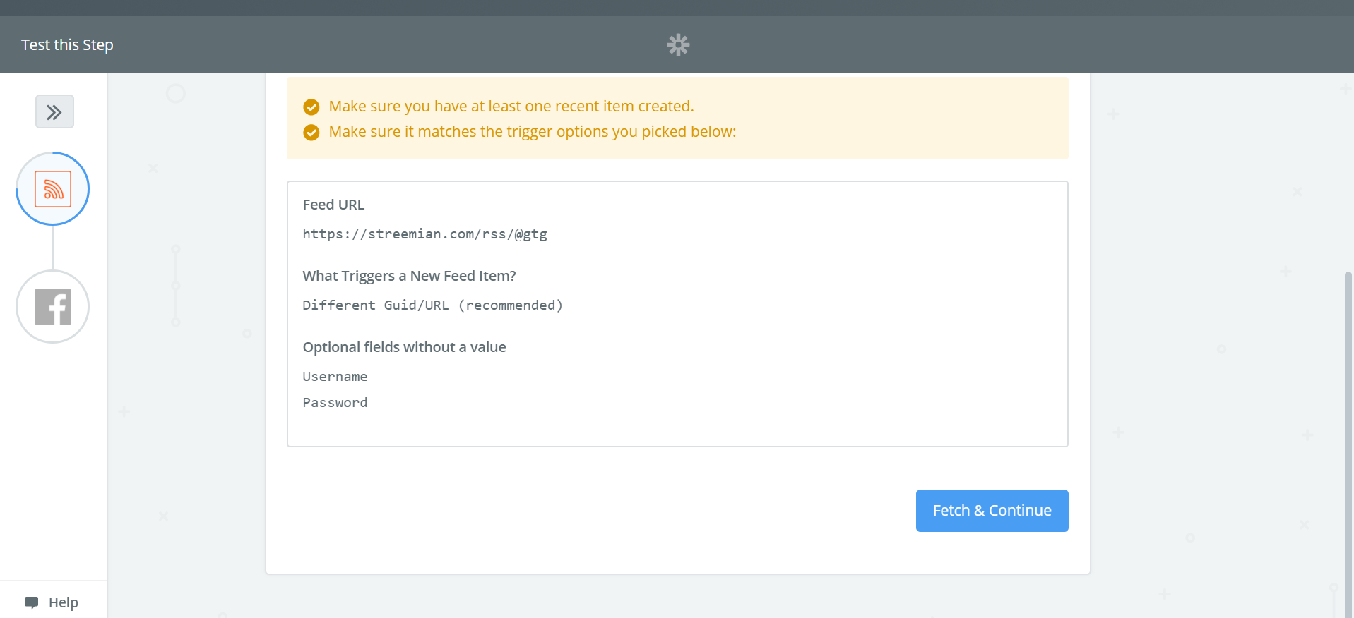 Go to RSS Zapier section