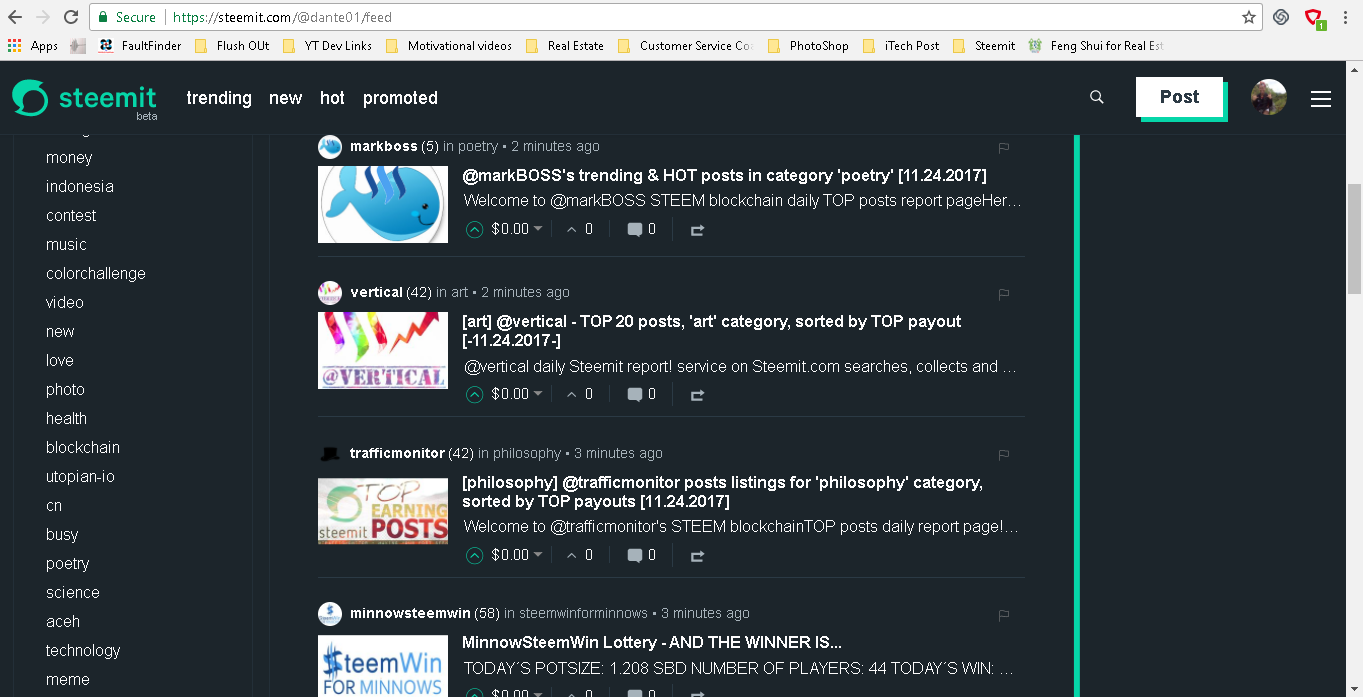 Ex. @markBOSS's trending & HOT posts in category 'poetry' [11.24.2017]