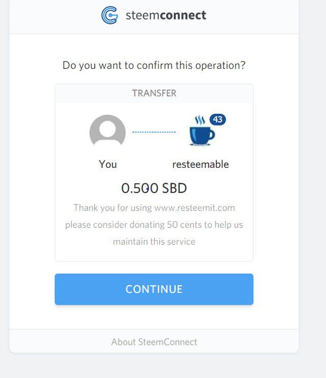 No, you don't have to transfer to them, just hit the back button on your browser after you get to that screen. It will still resteem. Let me know that it came out right, because I'm sure @resteemable wouldn't want to charge you anything. That is for the people that have grown up from our stage and want to voluntarily contribute to help others. IT IS PURELY VOLUNTARY and doesn't affect whether he resteems your post or not.