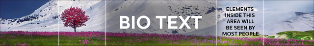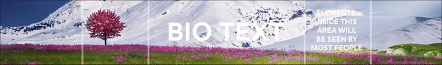 - General landscape photos or images without a specific object to focus on work the best. The reason for this is that we are all looking at Steemit on different screen sizes. This can cause issues where banners with an element at the far left of the image will be cropped out for people using smaller screens. Therefore, if you want to include an element that more people will see, consider putting it around 350px from the left or right edges. Also try not to put elements inside of the 'bio-text' area as it will be obscured and may make the text even harder to read!