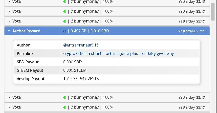 So this shows us that the market currently favors Steem (Steem Power/SP) over Steem Dollars (SBD), so we can expect that the blockchain will reward us in Steem that is not at a 1:1 ratio, since the market determines that Steem (Steem Power/SP) is more valuable, and therefore will not award the same. However, this does not explain the huge discrepency between my Steem Dollar (SBD) and my Steem Power (SP) reward from the aforementioned Cryptokitty post.
