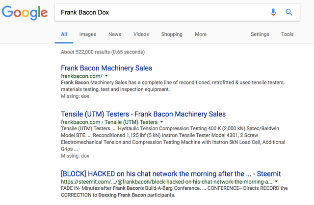 Frank Bacon Dox? In FAIRness to Google, [BLOCK] you Google... [BLOCK] YOU!