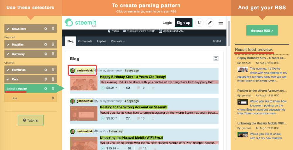 Thank you! I've been searching for a way to create an RSS feed for my SteemIt blog. You've just saved me a ton of time and headaches. Thank you!