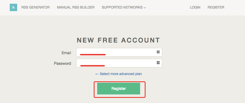 You will see an example of the RSS feed content, and then you can click the "Proceed to registration" button.