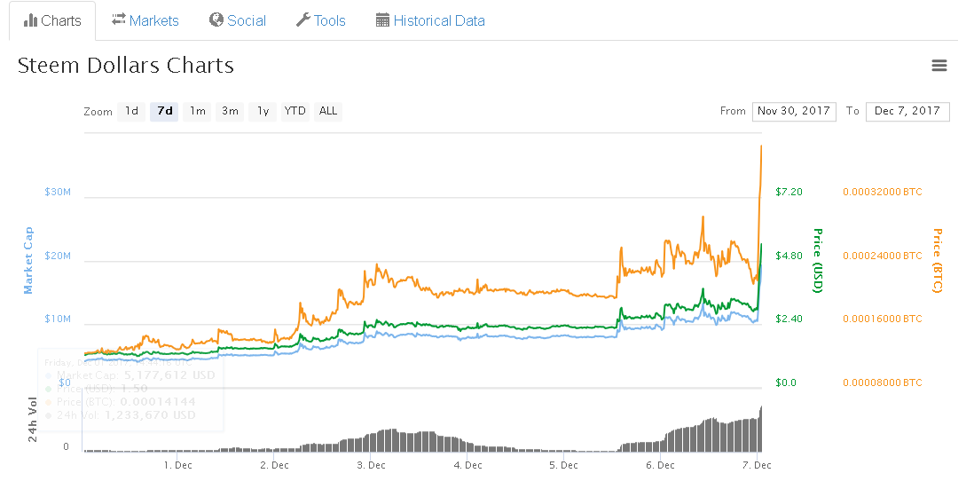 People predicting Steem to reach 10 USD by end of year were only partially wrong. Its the SBD that is going reach there first if this trend continues and not the Steem dollars.