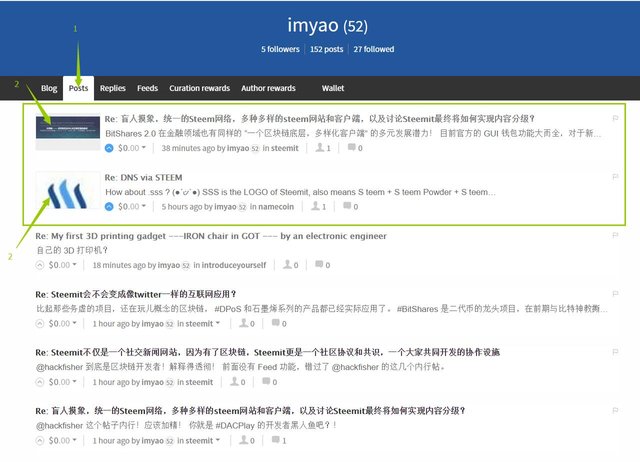 Then the Replies in the Posts list of @imyao will be displayed as a separate post. Reply to other people's posts also means that you created a new post, your voice can be individually shared to others.