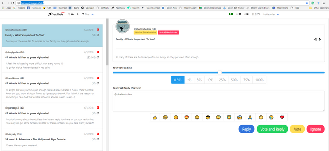 The one thing I am not that thrilled with is the auto-posting of "Sent with Fast-Reply". I have never been a fan of auto-posting and it was one of the reasons I was turned off bots, that, and the almost 100% chance of losing on the investment made. This is the main reason I don’t use it 100% of the time, that and the fact that it does not show the context as to which the reply was given, there is a direct link in the top right corner to either Steemit or Busy so you can find the context but not easily.