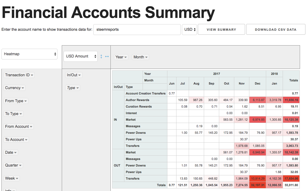 Steem reports is a site for generating detailed reports on various topics. They look like this: