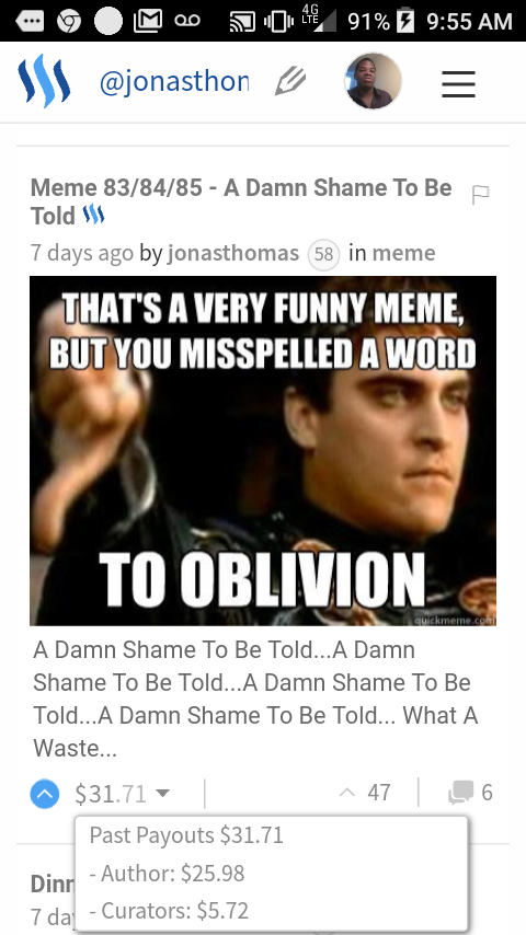 Regardless, I should had got back some of my returns on the SBD from the last 3 post, those last 3 should had still been effect regardless if the price of Steem was $1.50 because those earnings range from about $30 to $60 and the only return I see is from that meme post worth $86, still should had got back a lot more from those last 3 and was suppose to leave transaction details of those last 3, still see no details on that.