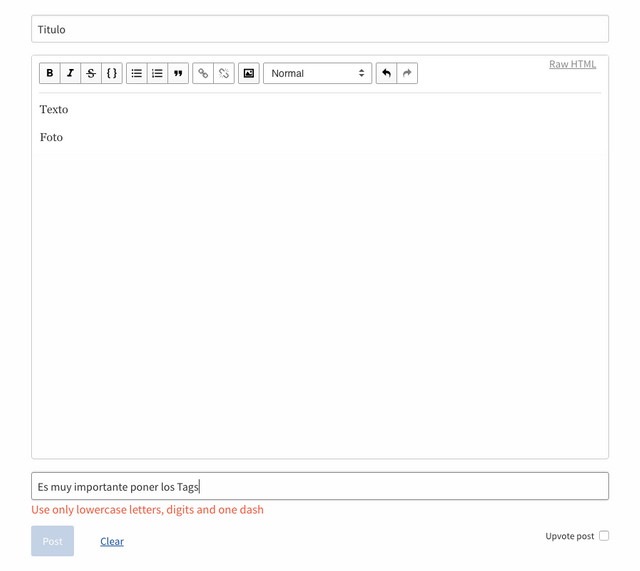 12) Para terminar tenemos que escribir los "Tags", para ello te recomiendo que veas los que estan funcionando, ya se viendo a la derecha en la página de inicio, o en las categorias de "hot y trends". No escribir en MAYÚSCULAS, si no no te deja enviar. Último paso, clickamos en post. Ya esta públicado, solo toca esperar.