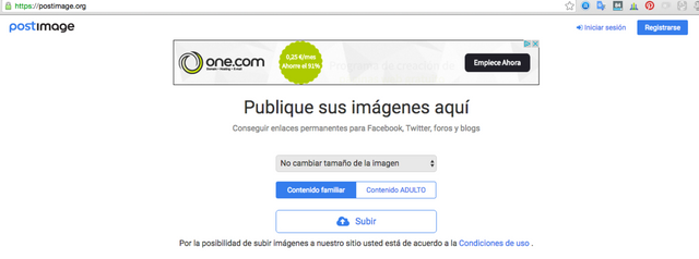 10) Vamos a la web, https://postimg.org para subir la foto que queramos. Una foto cada vez, no más de una, si no sale mal.